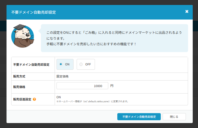 2. 不要ドメイン自動売却設定をONにする(デフォルト:OFF)