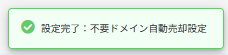 変更が完了すると、ドメイン管理画面の右下に「設定完了:不要ドメイン自動売却設定」と表示されます。