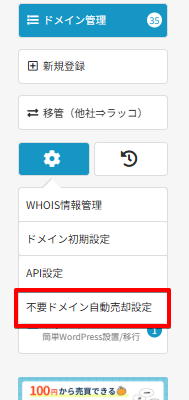 最後に「不要ドメイン自動売却設定」をクリックします。